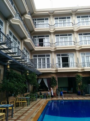 2日目はアンコール遺跡群巡りです。 朝起きてホテル朝食バイキングを食べました。ホテルは4つ星ですので、可もなく不可もなくといったところでしたが、朝食は満足できました。ホテルの中央にはプールもありました。 バイキングの席はしばらく満席状態になっ…